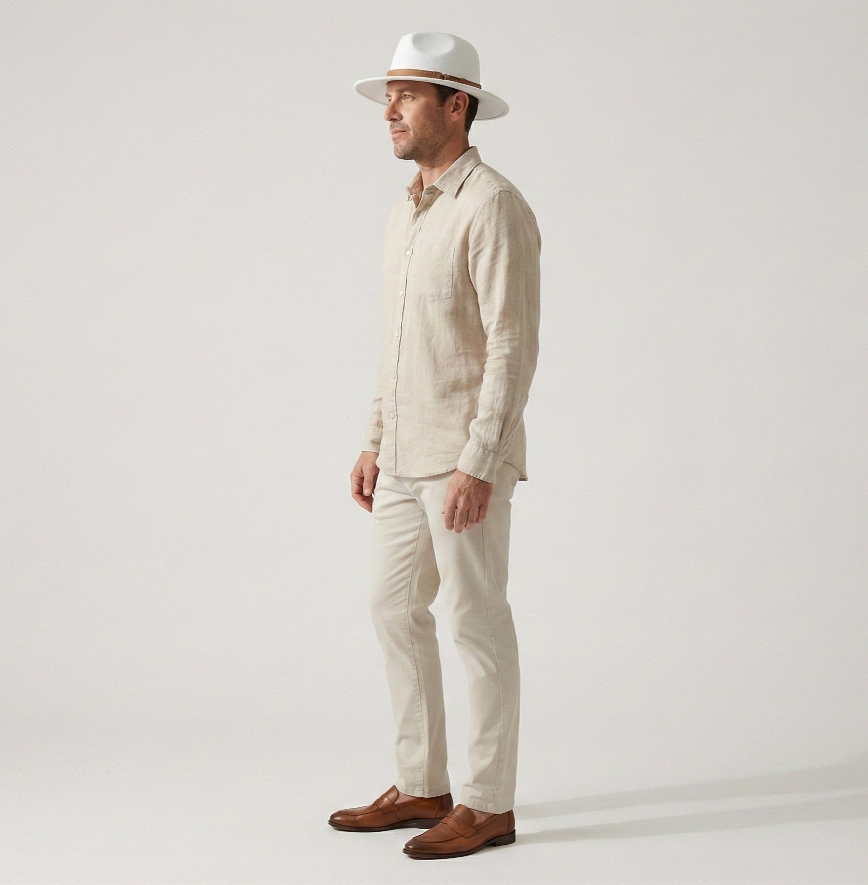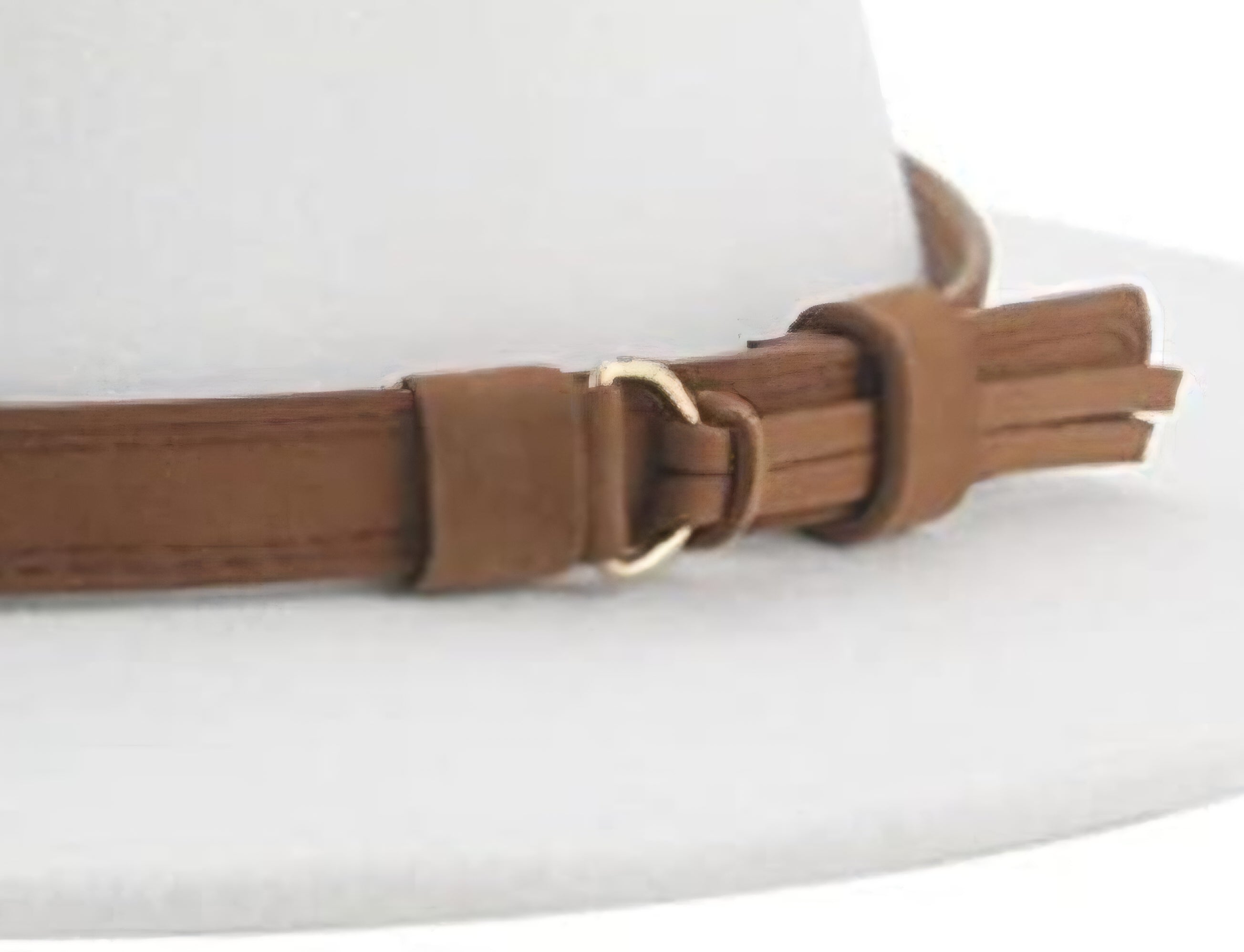 Le modèle Alfredo s'impose comme une pièce de mode structurée. Son contraste entre feutre blanc immaculé et ceinture effet cuir noisette à boucle crée une allure "gentleman" instantanée. Parfait pour les grandes occasions estivales : White Party, mariage chic ou pour sublimer un ensemble en lin beige. Pour les hommes qui soignent chaque détail.