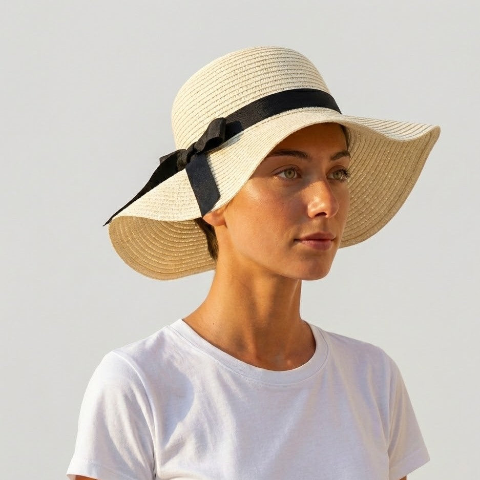 Le Silva sublime vos journées ensoleillées. Paille tressée beige, larges bords enveloppants, nœud noir affirmé : protection et style réunis. De la plage aux terrasses urbaines, il s'adapte à tous vos moments d'été.